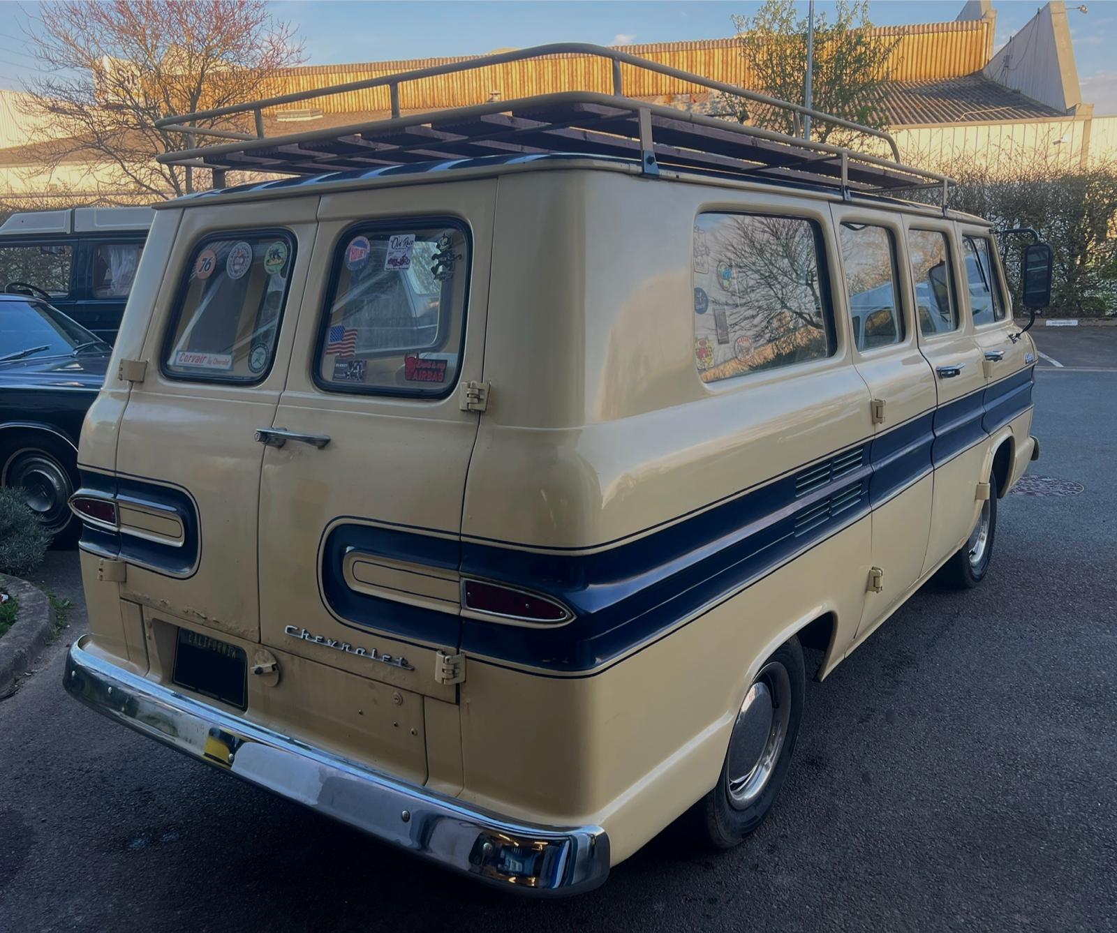 💡 Produite entre 1961 et 1965, la Greenbrier était la réponse de Chevrolet au succès du VW Combi. Son moteur arrière permettait un plancher plat, très pratique pour le transport… ou l’aménagement façon van life bien avant l’heure ! 🏕️🚐