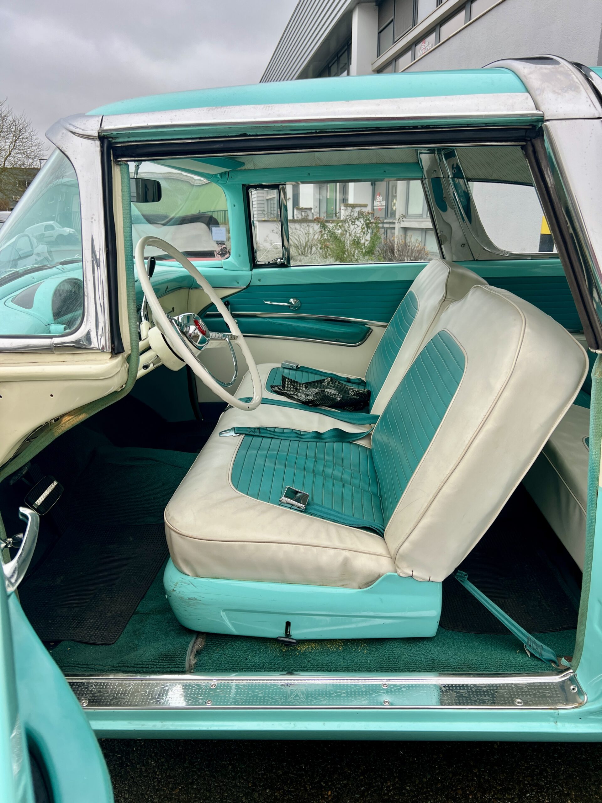 Bien en avance, en 1955 Ford commence a proposé un système de climatisation installé en usine. Propulsée par un puissant moteur V8 4,5L de 162ch et accouplé à une transmission Ford-O-Matic à 3 vitesses elle est, à l’époque, d’un dynamisme remarquable. La version Crown Victoria, est en réalité la version coupé du modèle.