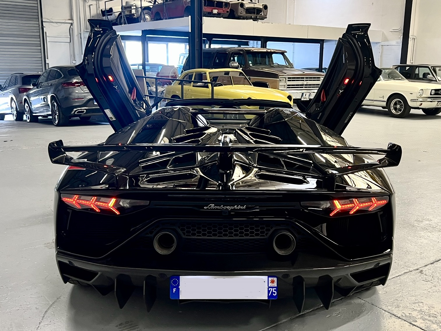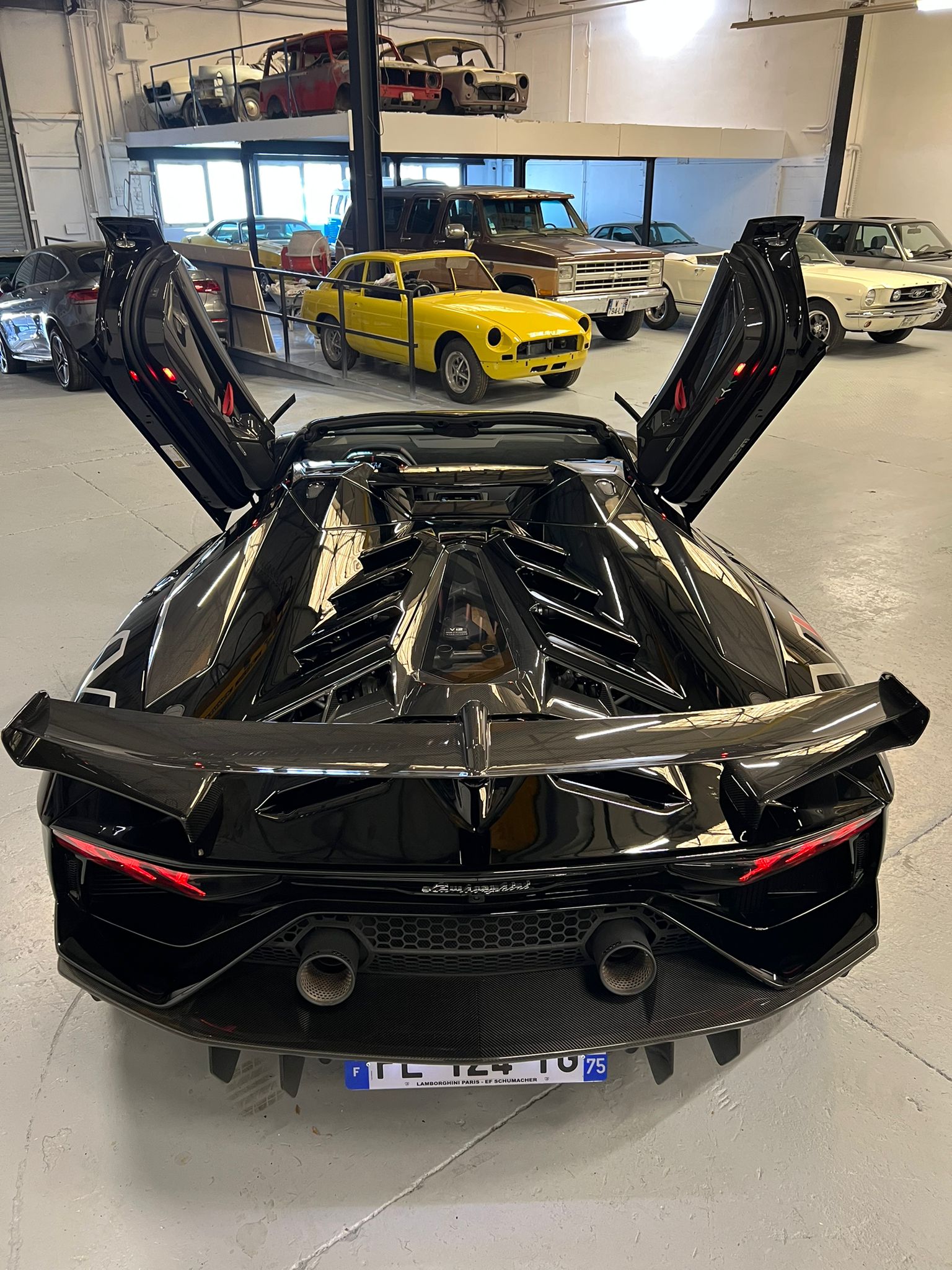 😱 C’est dans ce modèle que l’on retrouve toute la démesure de Lamborghini avec : un V12 atmosphérique 6,5L de 770ch, la propulsant à 100km/h en 2,9 s ! Elle est bien aidée par ses 4 roues motrices, associées à 4 roues directrices, un système d’aéro actif (ALA), une suspension active, ainsi que l’usage à profusion de carbone pour aller chercher la performance !