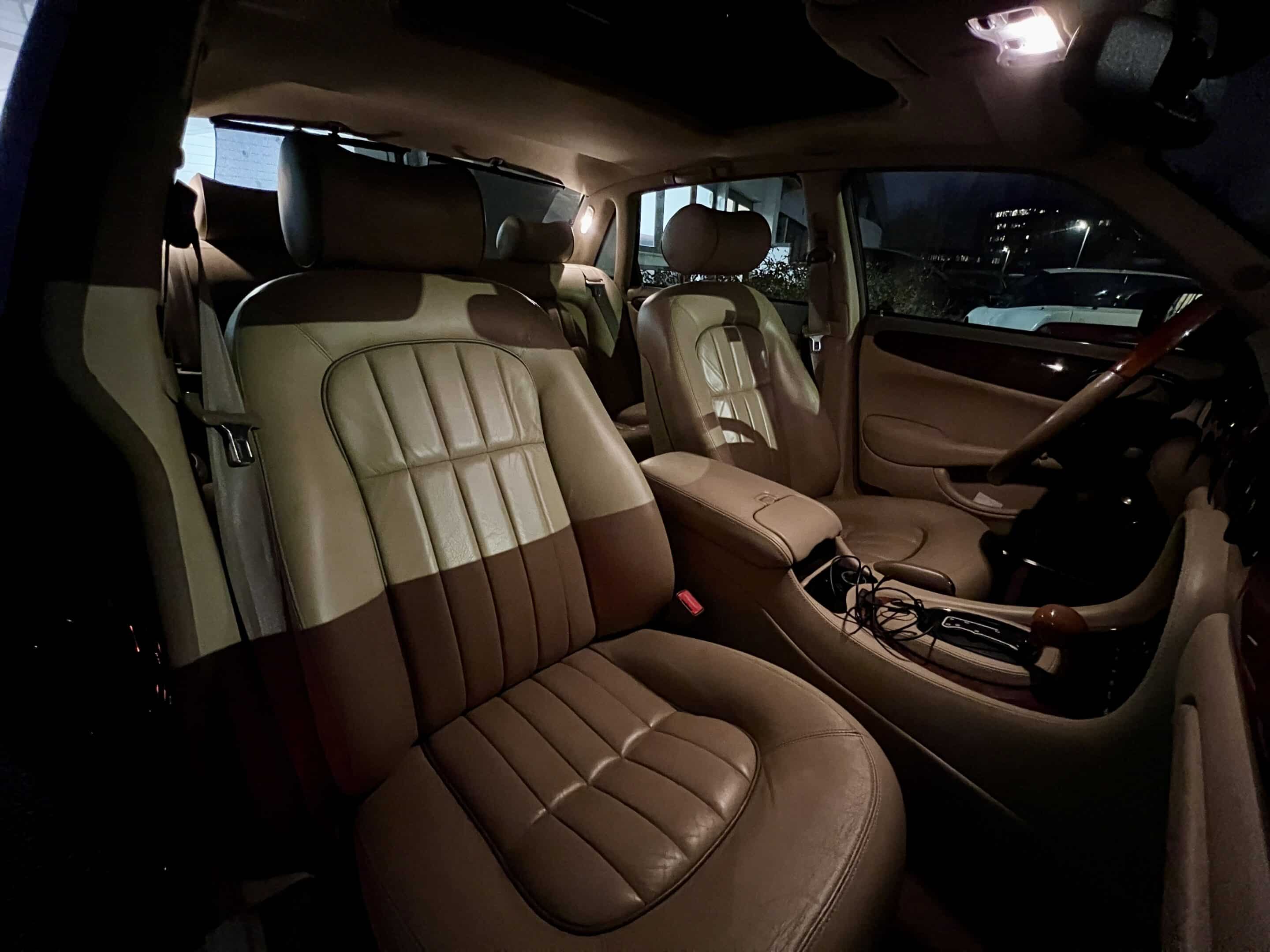 🤴 Retour en Angleterre avec ce paquebot énervé. Cette magnifique Jaguar XJ R de 2001 est motorisée par un V8 4.0L compressé qui développe pas moins de 375ch. Ce qui permet à se mastodonte d’atteindre les 100km/h en 6,6 secondes et dans le plus grand des conforts à l’Anglaise.