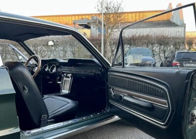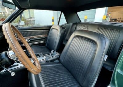 Cette Ford Mustang de 1968 est proposée avec une sellerie vinyle noire avec console centrale en alu.
